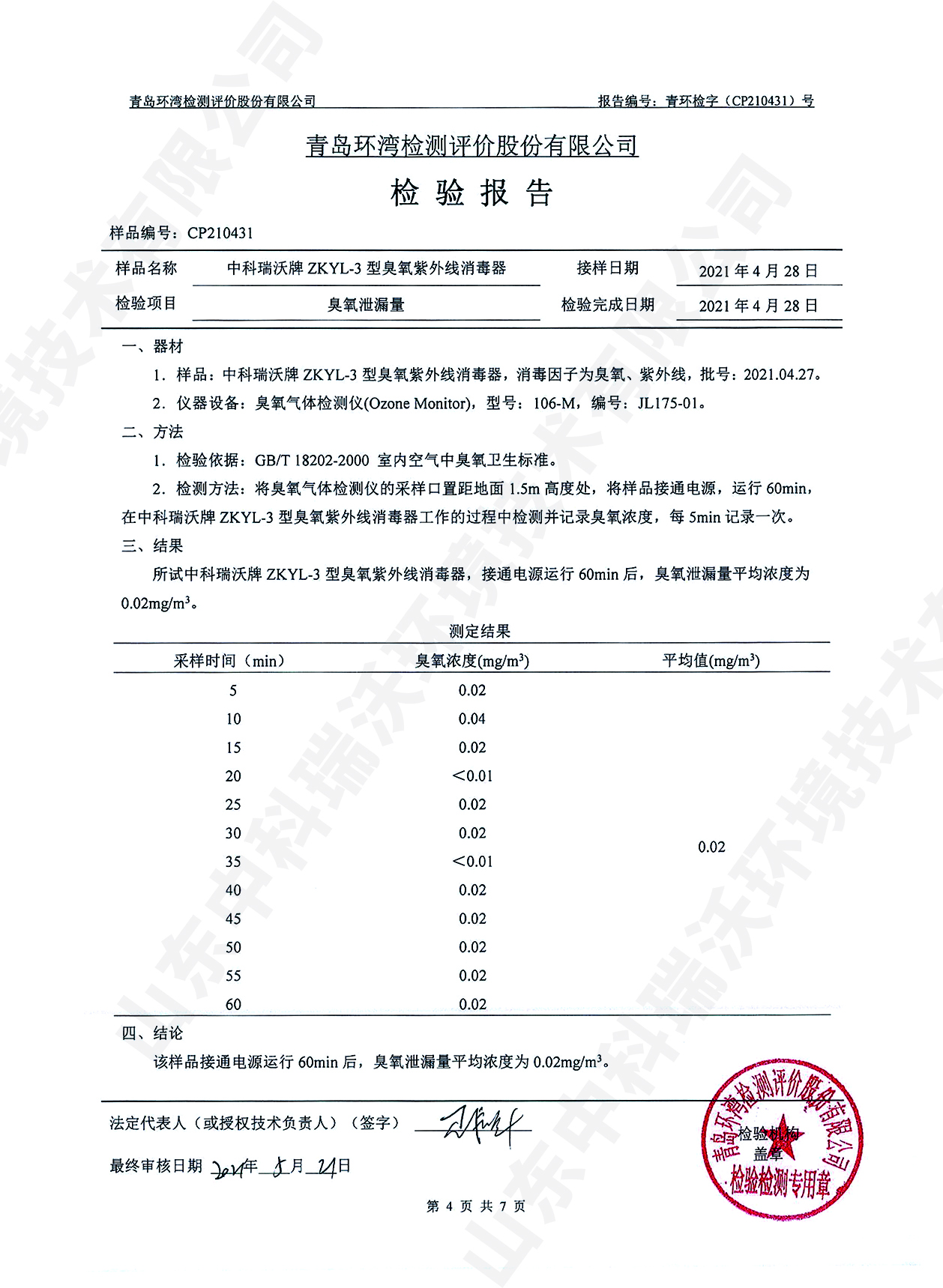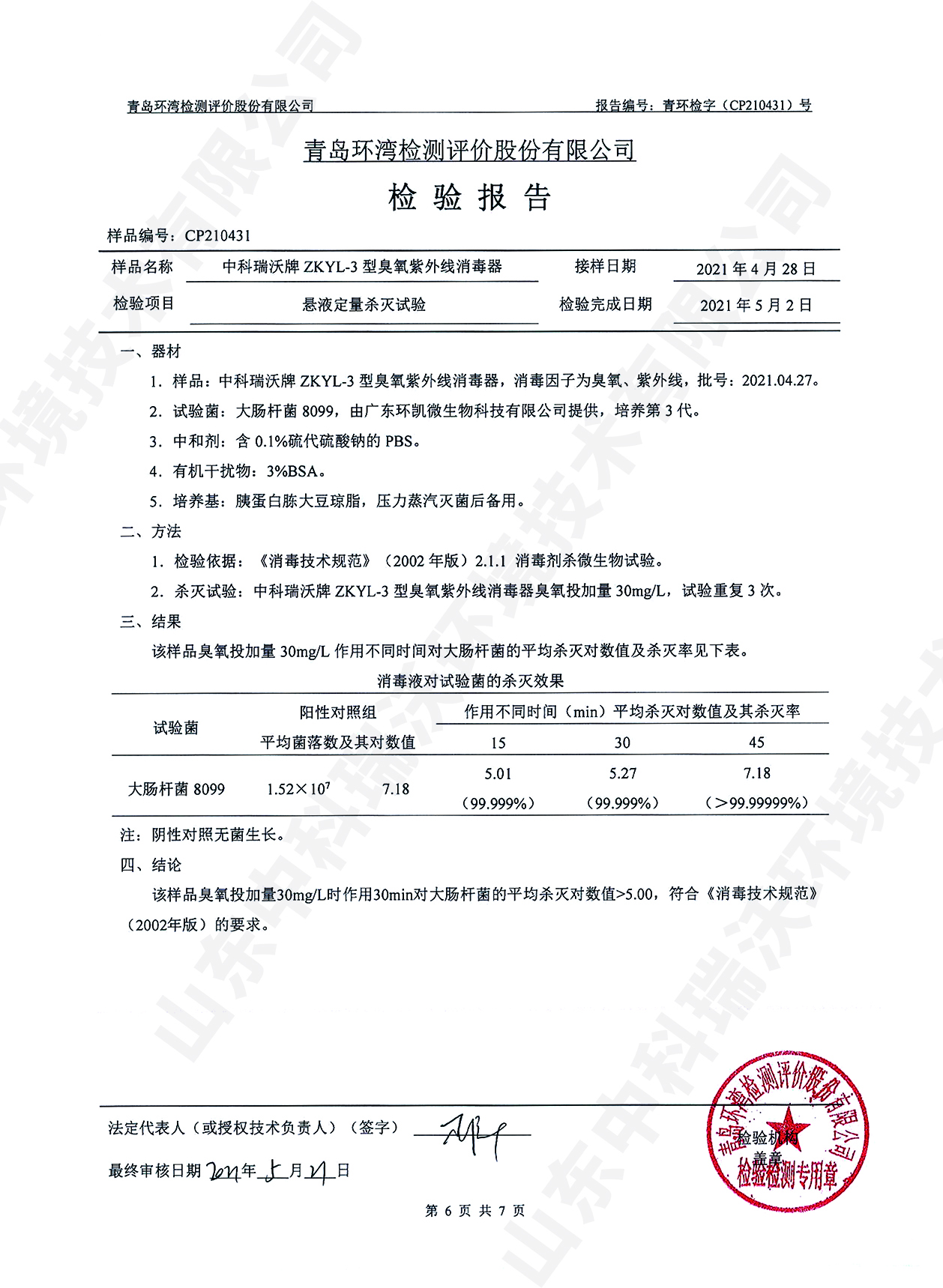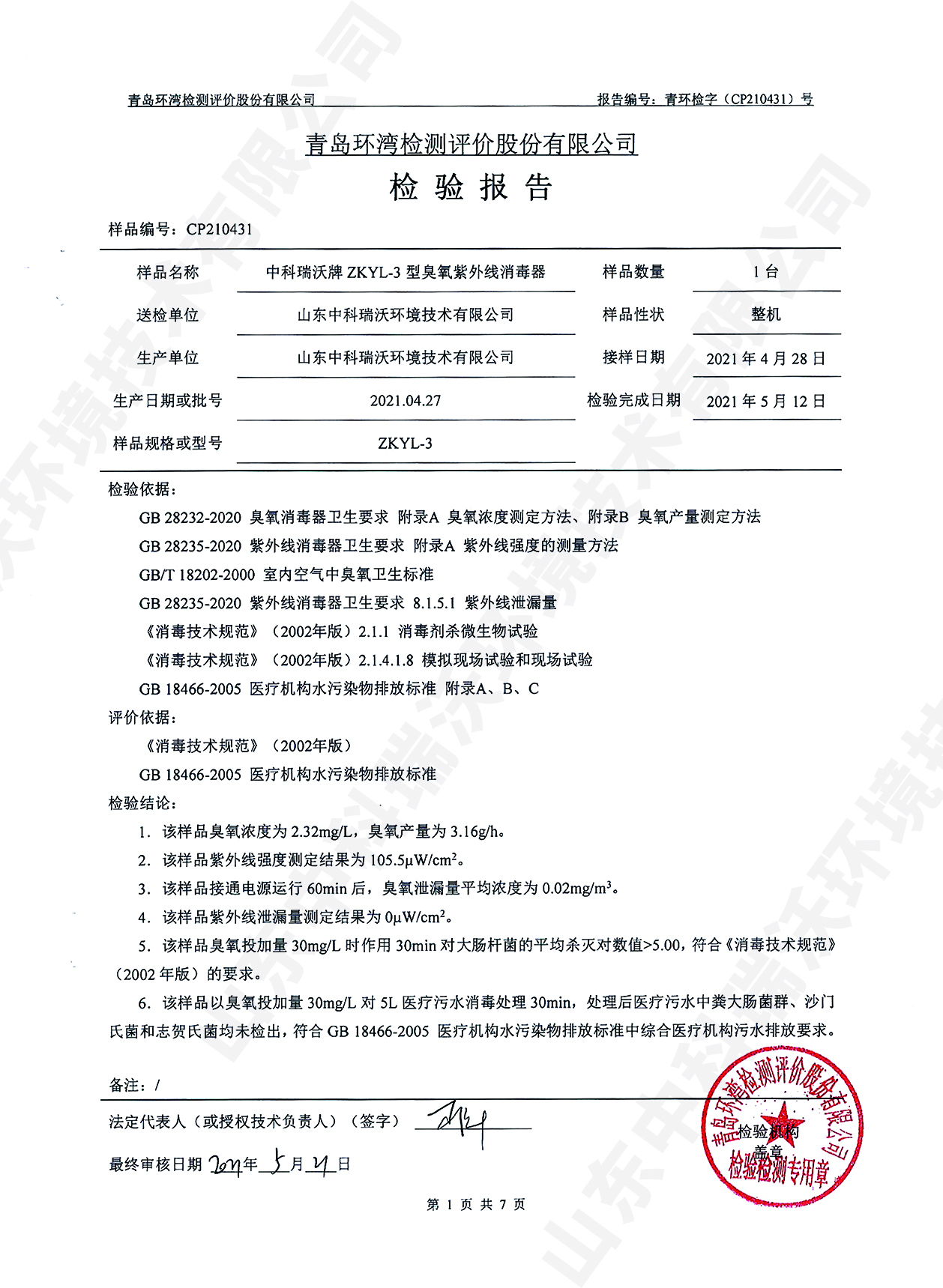 醫(yī)療污水處理設備檢測報告~臭氧消毒