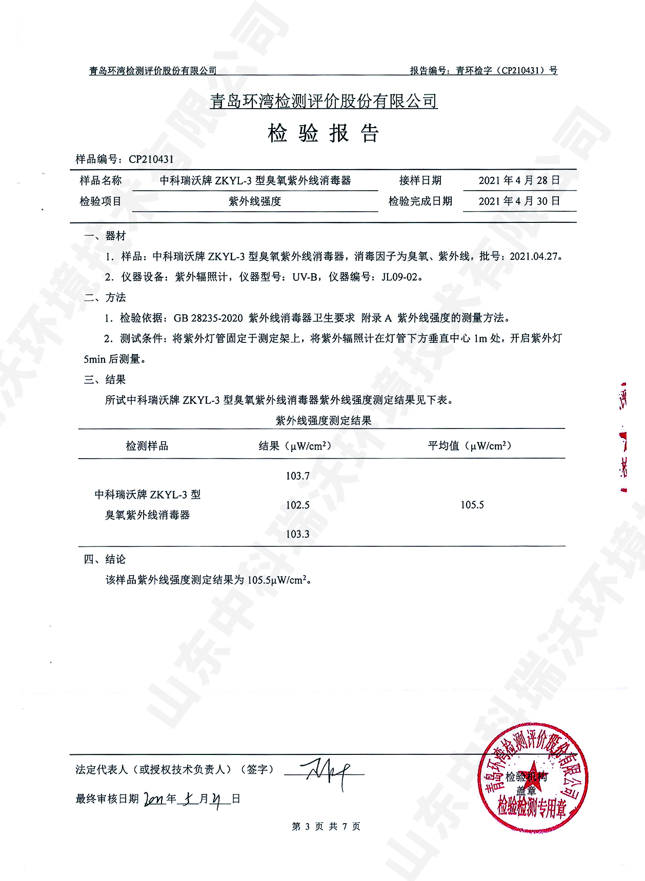 醫(yī)療污水處理設備檢測報告~臭氧+紫外線消毒